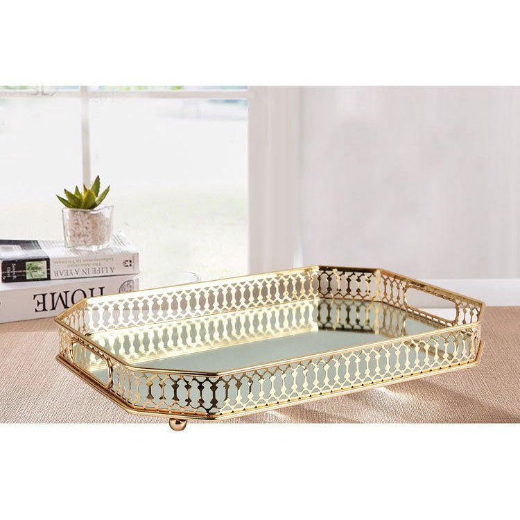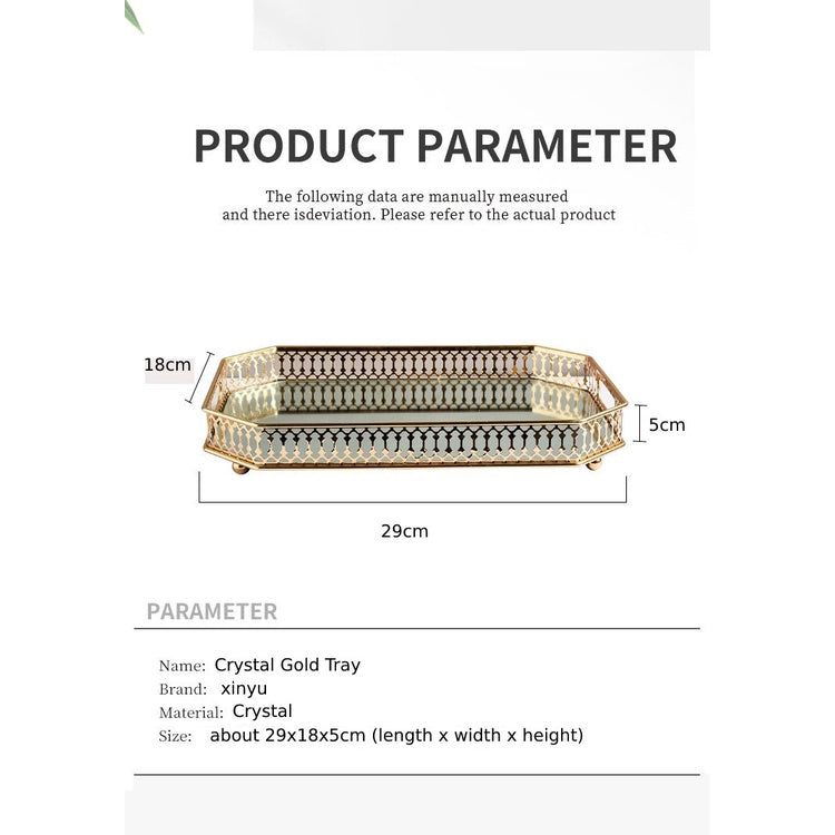 Crystal Tray Decorative Organizer Dessert Serving Nordic Style Retro Hollow Gold-plated Luxury Home Stylish Decoration