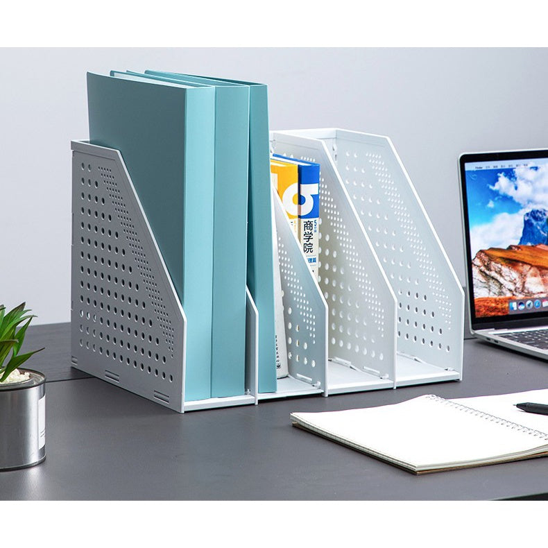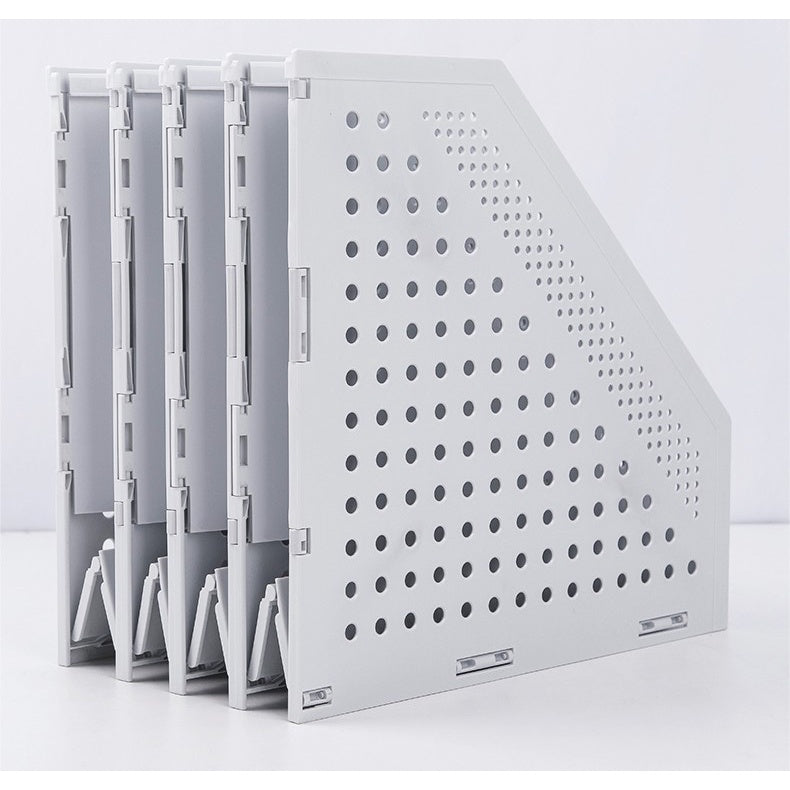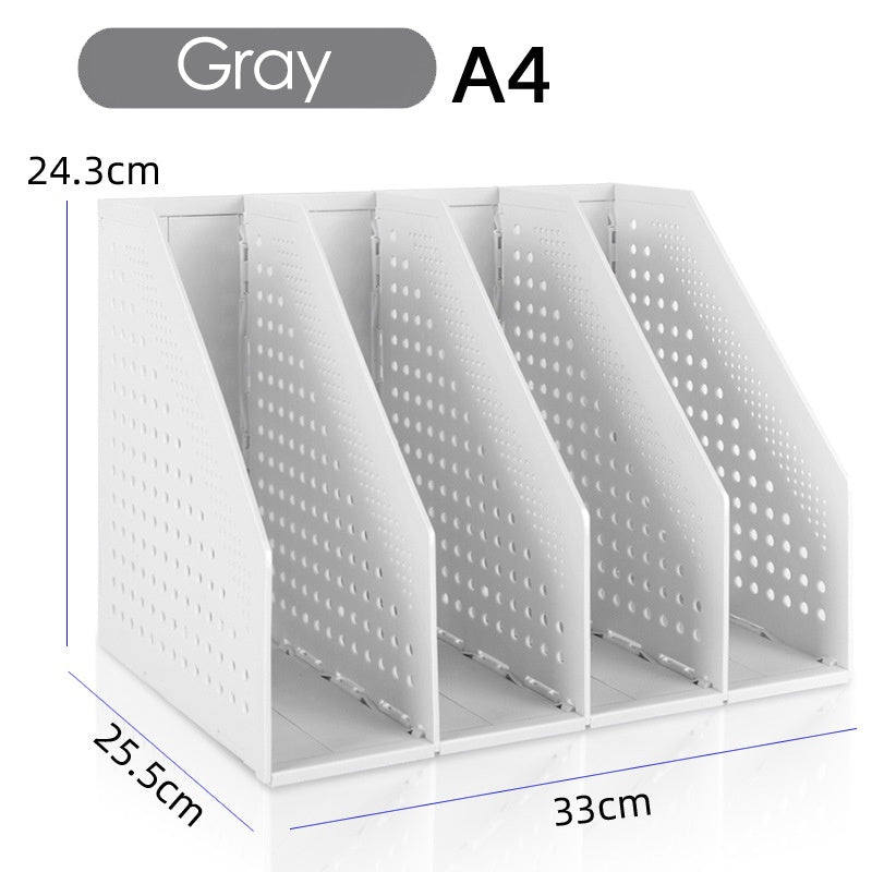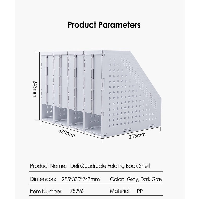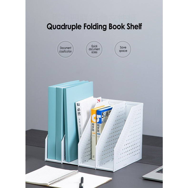 File Box Foldable Storage Box Desk Shelves Book Stand Office Quadruple File Rack Bookshelf Collapsible Book Stand