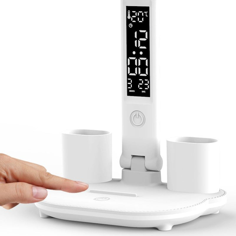 This desk lamp features a built-in digital display that shows time, temperature, or battery status, making it not only a lighting source but also a convenient gadget for students and professionals. The display is intuitive and easy to read, adding a modern touch to your desk.