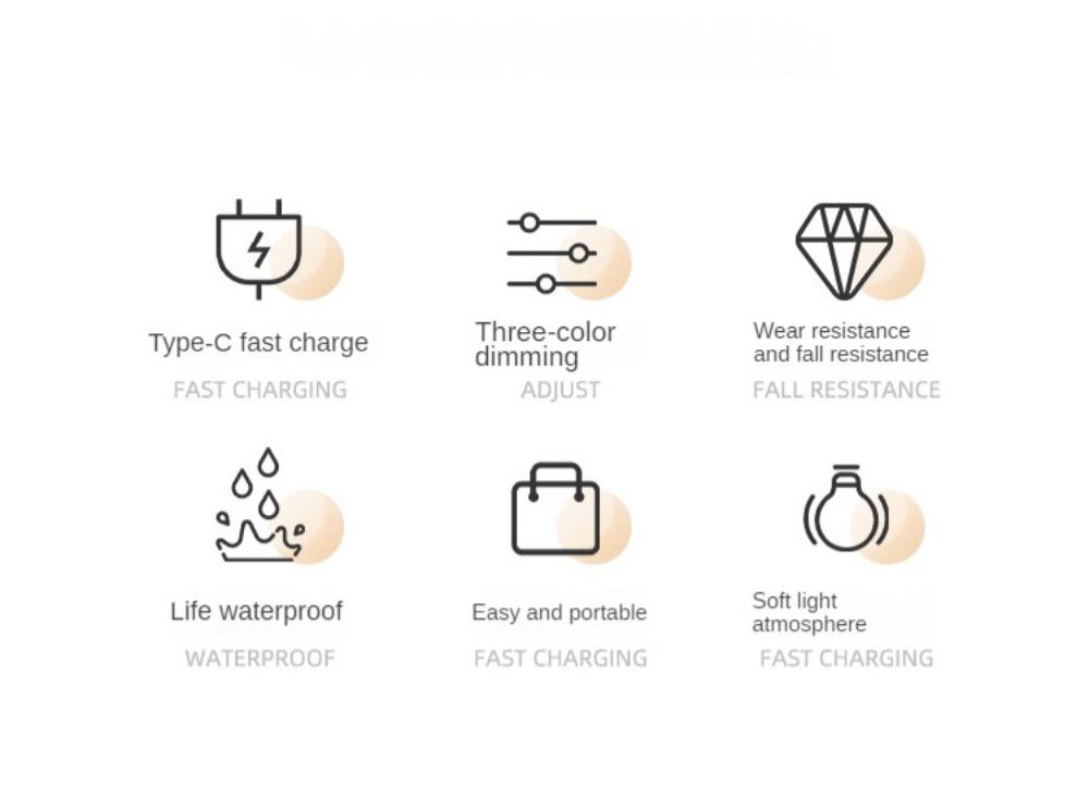 * There are 3-level brightness (low, medium, high) for different purposes, with charging indicator, low brightness for parenting when sleeping, medium brightness for daily use, high brightness when reading or working.
