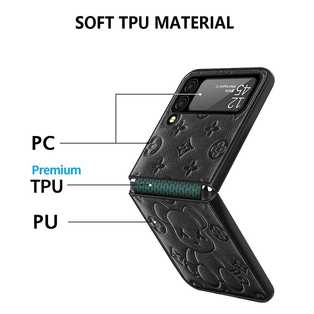 Pink Violent Bear Phone Case For Samsung Galaxy Z Flip 3 Leather Case Camera Screen And TPU Hinge Shockproof Protection