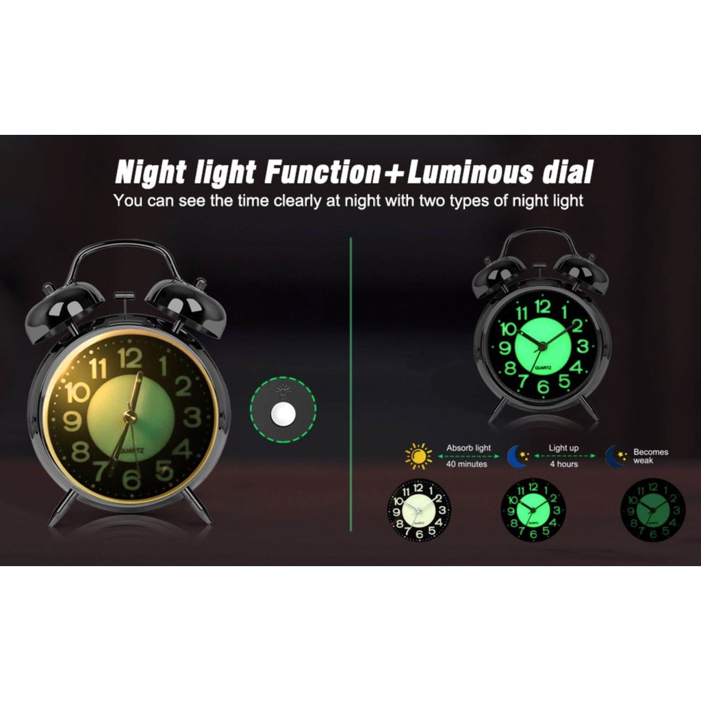 Silent Non-Ticking Analog Quartz 4 inches Battery Operated Twin Bell Loud Alarm Clock with Backlight for Bedroom
